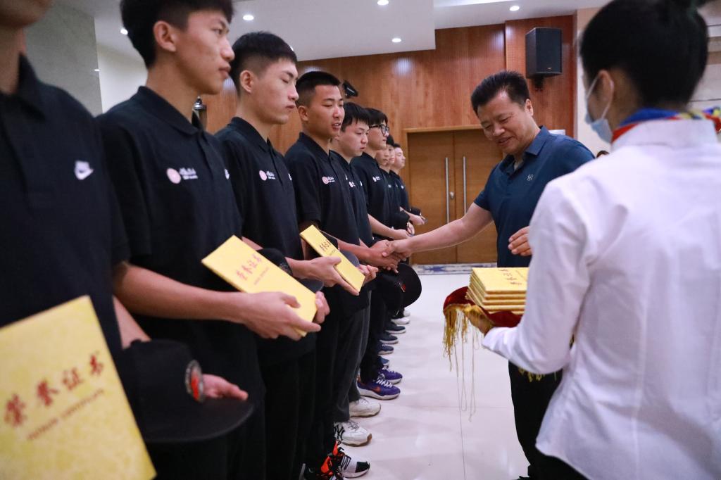 杜旭和校学工部部长王志刚为志愿者颁发了支教证书和纪念品,乌钢向支教团授旗,既是对公益事业的深情嘱托,更是“以体育人”的责任传递。