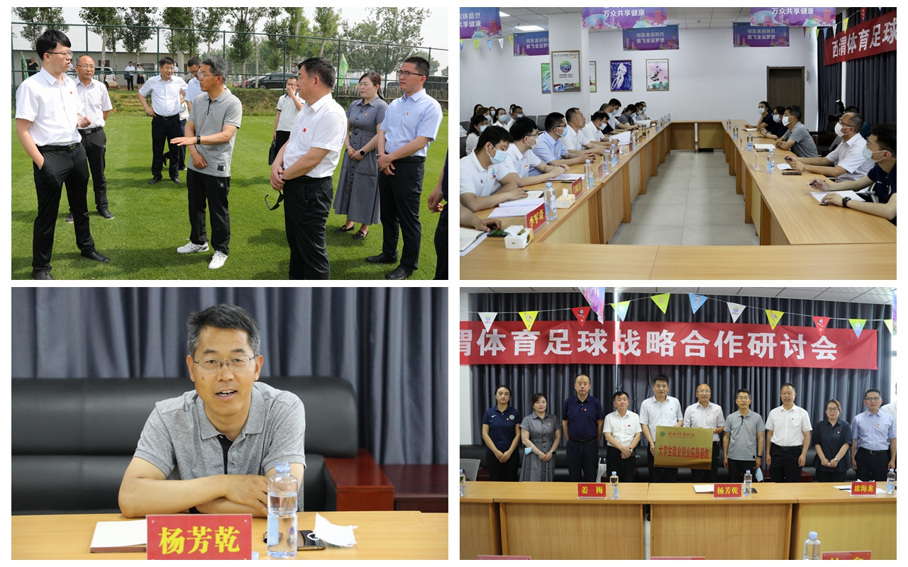 杨芳乾带领足球学院班子一行5人前往渭南市大荔县西北足球训练基地走访调研,并举行“大学生就业创业实践基地”授牌仪式。杨芳乾一行先后到西北足球训练基地、西北足球草坪培育基地、沙滩排球馆等地考察调研。杨芳乾表示,实习实践基地的建立对融合地方产业发展优势和学校人才、科研、专业优势提供了桥梁,学校要以特色体育项目为抓手,推广普及体育文化,促进全民健身,推动地方体育经济文化发展。同时要认真分析后十四运时期体育专业的发展趋势和人才需求形势,查找学校在专业设置、人才培养、就业服务等方面存在的短板,为学校深化教育教学改革,高质量办学提供参考依据,进一步增强复合型体育人才培养的针对性和适应性。
