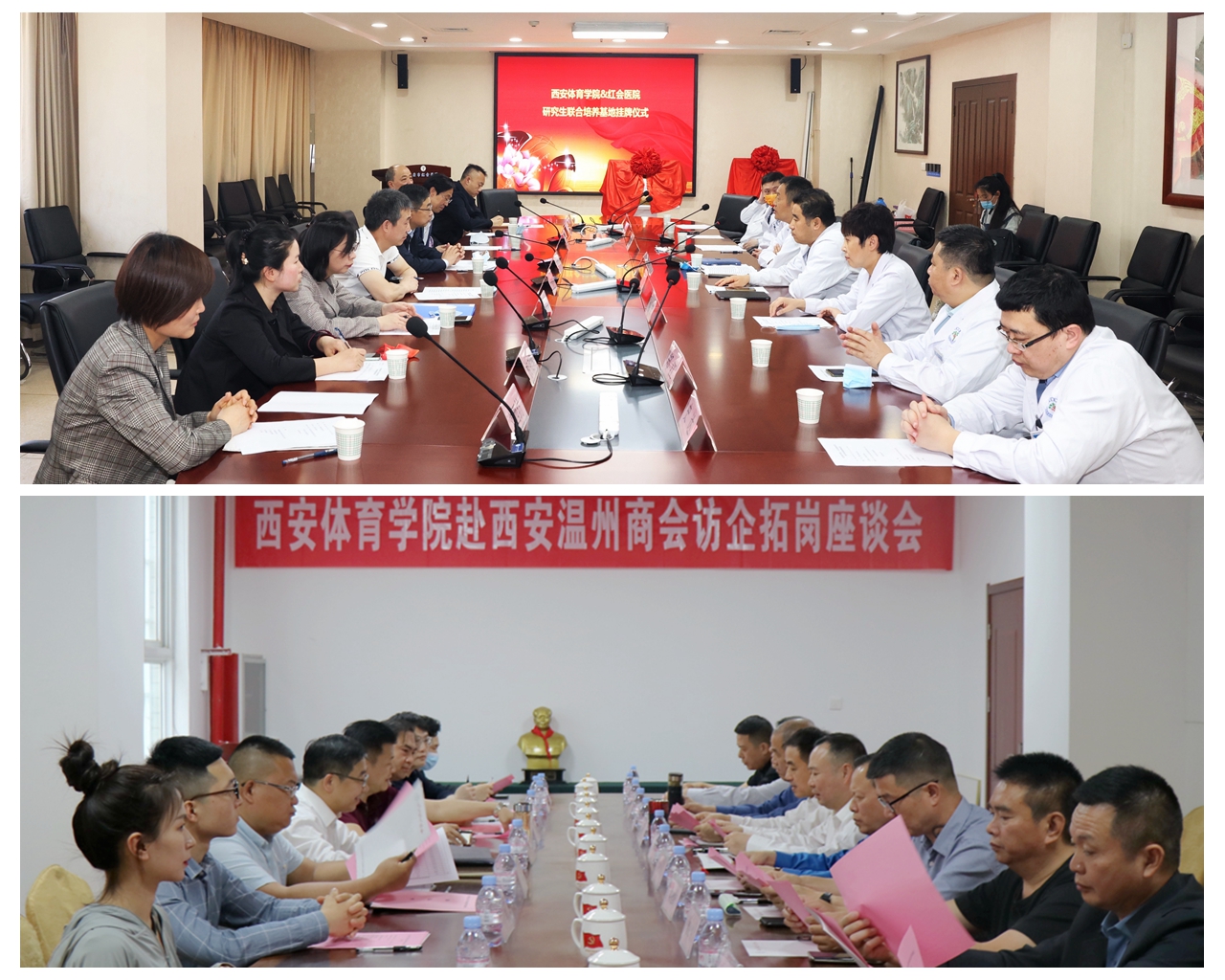 刘子实带领研究生部、体育经济与管理学院一行先后前往西安红会医院、陕西(西安)温州商会等单位开展访企拓岗交流洽谈,并举行“研究生联合培养基地”和“大学生实习实训基地”签约揭牌仪式。刘子实介绍了学校的建校历史、基本情况、办学传统与特色,阐述了西体质量立校、学科强校、人才兴校、依法治校、开放办学五大发展理念和“招好生”“培养好”“就好业”三好人才培养模式。他表示,开展访企拓岗行动是学校强化校企衔接、深化校企合作的重要途径,也是学校提升人才培养质量,促进毕业生就业的迫切需求。双方应发挥行业资源优势和学校人才技术优势,在科教协同、产学结合,高水平课题研究、创新人才培养等方面加强合作,开创校企强强联合、学校积极引导、企业共促推进、实习带动就业的常态化合作新局面。