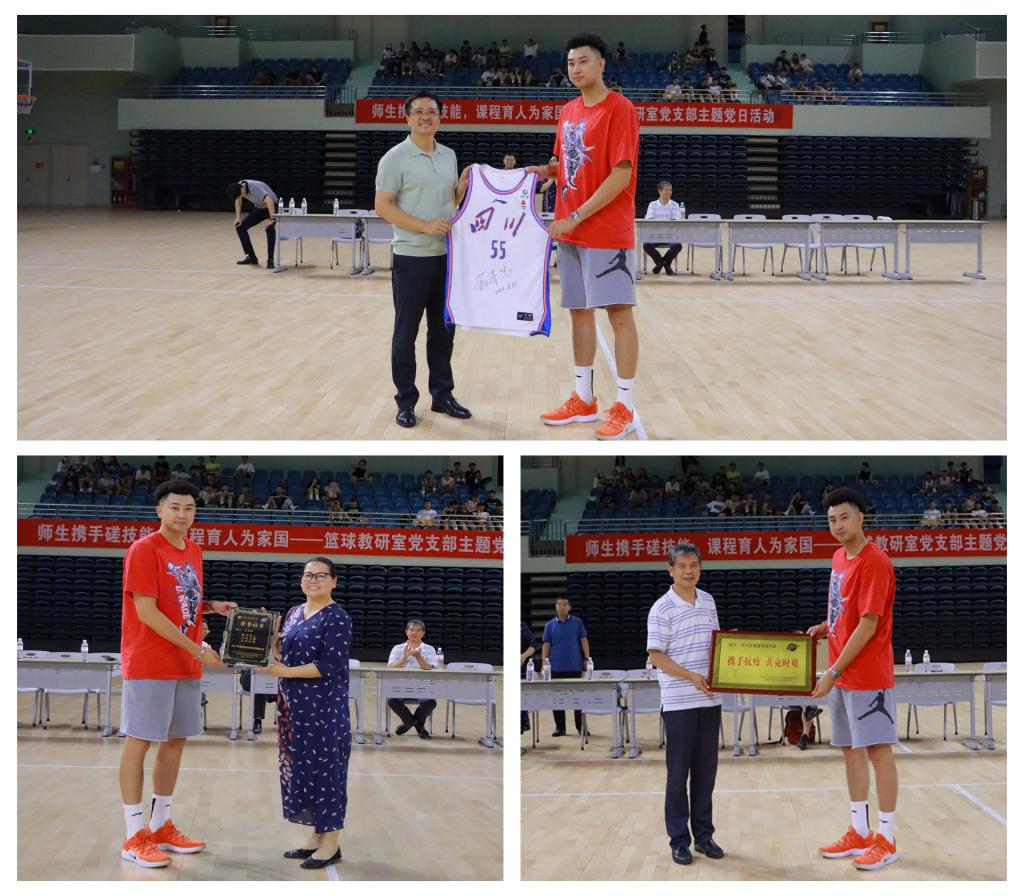 赛后还举行了一场特殊的颁奖仪式。为感谢苏若禹同学在2021年末西安疫情最紧要关头对运动训练学院捐赠防疫物资,为学校抗疫做出的突出贡献,运动训练学院党委还为苏若禹颁发了荣誉证书,对其效力的俱乐部表示了感谢,苏若禹向学校捐赠球衣。