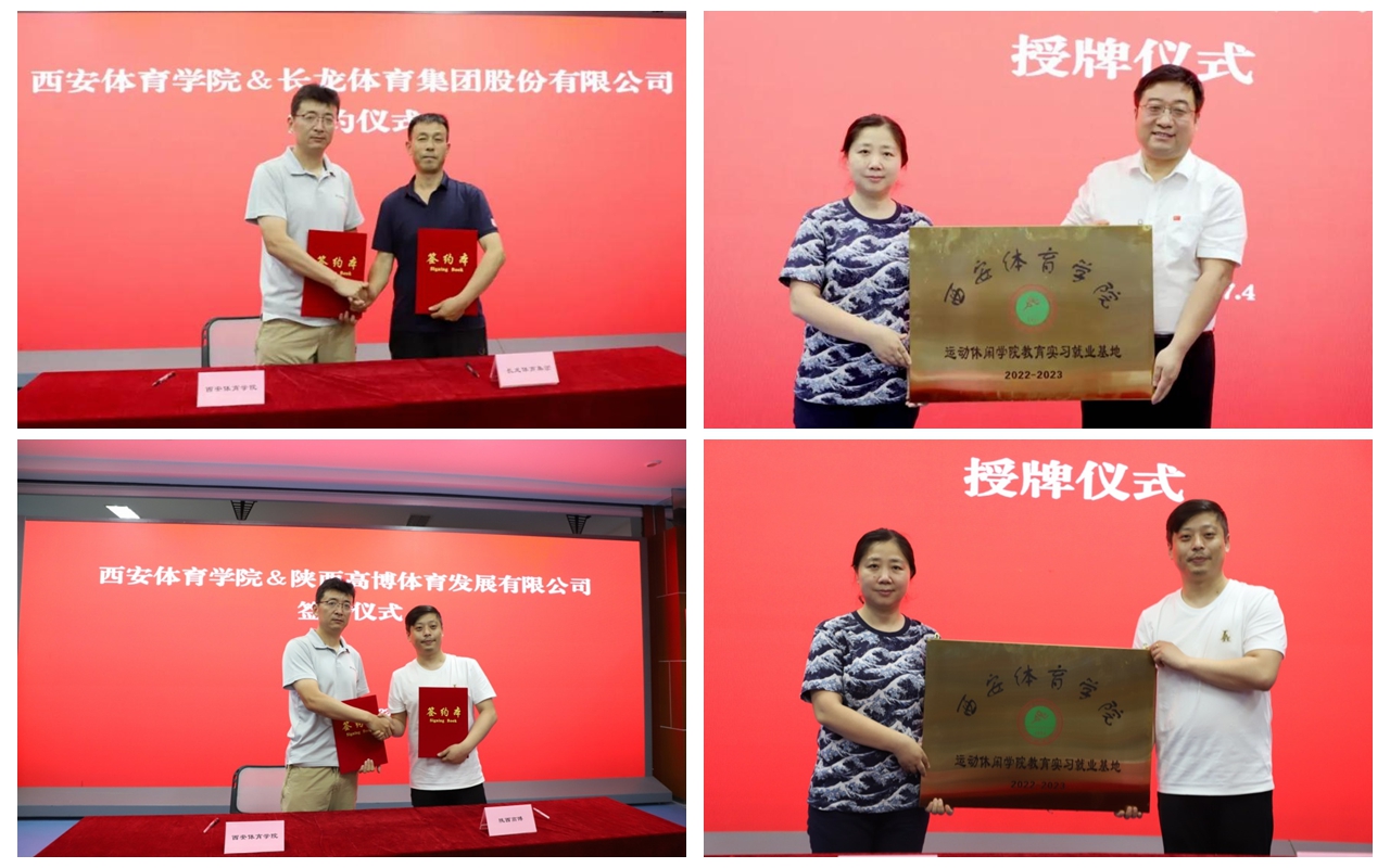 本网讯 7月4日上午,副校长谢英带领运动休闲学院党政负责人一行6人到访长龙体育集团股份有限公司与陕西高博体育发展有限公司实地考察,就推动教产融合、加强校企合作等进行深入洽谈,并签订合作协议。长龙体育集团董事长吉云波、副总经理张书民,高博体育总经理贺强等相关负责人员参加座谈。