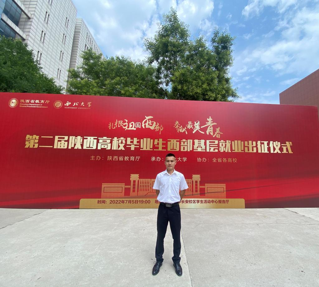 邱宝辉在校期间积极投身社会实践,2020年在学校组织陕西省黄龙县“双百工程”支教活动中,主动报名参与,并在活动中荣获“优秀支教教师”称号。正是这次支教经历,让他坚定了自己服务基层的决心,并将其转化为了解基层岗位招聘、积极备考参考的实际行动。今年5月西藏自治区在内地招录乡镇公务员,邱宝辉在老师的悉心指导下,从全省210余名报考考生中脱颖而出,以优异的成绩顺利通过了西藏阿里地区乡镇公务员考试,成功录用为西藏自治区阿里地区乡镇公务员。