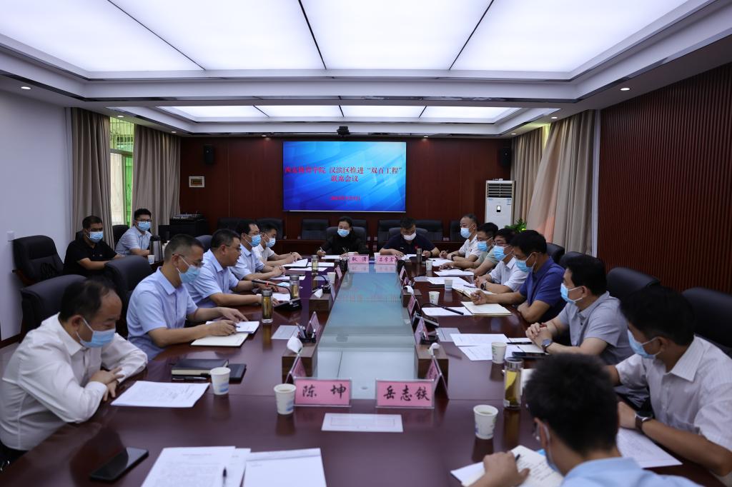 本网讯 为扎实推进“双百工程”,实施精准帮扶对接,助力汉滨区乡村振兴,9月5日下午,校党委书记黄道峻、党委副书记文立新、副校长张卫国以及相关部门负责人赴汉滨区对接“双百工程”助力乡村振兴帮扶事宜。黄道峻一行与汉滨区区委书记范传斌、副区长徐兴平以及该区相关部门负责人召开了推进“双百工程”工作联席会,本次会议系“双百工程”工作由黄龙县调整至安康市汉滨区的首次会议。