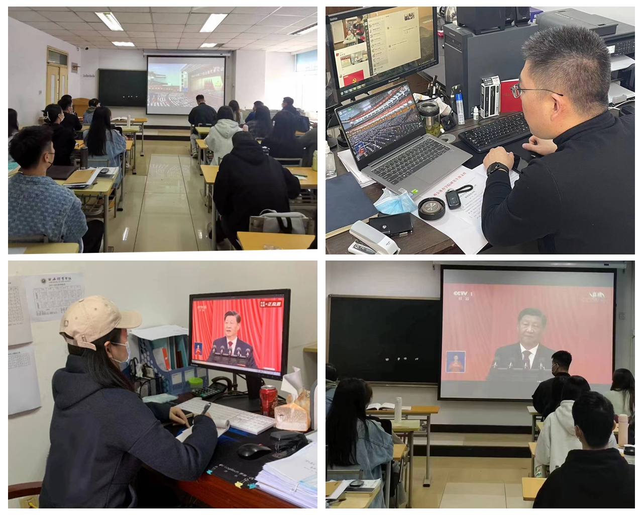 马克思主义学院:马克思主义学院组织全体教师第一时间收看二十大开幕会现场直播,认真学习了习近平总书记的重要讲话。大家一致认为,中国共产党第二十次全国代表大会,在党史、新中国史、改革开放史、社会主义发展史、中华民族发展史上具有里程碑意义,吹响了全面建设社会主义现代化国家号角。我们所创造的人类文明新形态具有坚持和平发展、打破了“国强必霸”逻辑,尊重文明多样性、超越“普世价值”观,合作共赢、突破“零和博弈”思维方式的新特征和显著优势。作为新时代思政课教师,要以行动证明决心,不断强化学习的主动性、创造性,落实立德树人的根本任务,认真上好每一节思政课,发挥好思政课育人的主渠道。响应党的号召,牢记空谈误国、实干兴邦,坚定信心、同心同德,埋头苦干、奋勇前进,为全面建设社会主义现代化国家、全面推进中华民族伟大复兴而团结奋斗!