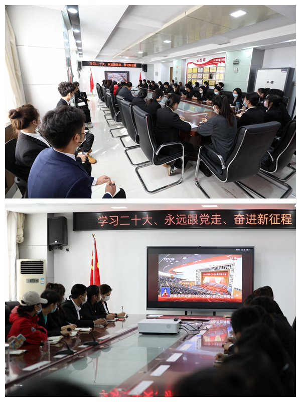 研究生部:研究生部党委组织学生第一、第二、第三党支部全体党员采取集中收看和个人收看的形式观看了二十大的盛况现场直播,研究生教工党支部全体党员也在第一时间在线自行收看了现场直播。大家纷纷表示,要把思想和行动统一到二十大精神上来,更加紧密地团结在以习近平同志为核心的党中央周围,全面贯彻习近平新时代中国特色社会主义思想,以二十大精神为指引,将立德树人作为研究生培养的根本任务,全贯彻落实学校“十四五”规划和双一流建设要求,加强作风建设,对标对标迎难而上,踔厉前行,为促进学校博士点申报和高质量发展贡献力量。