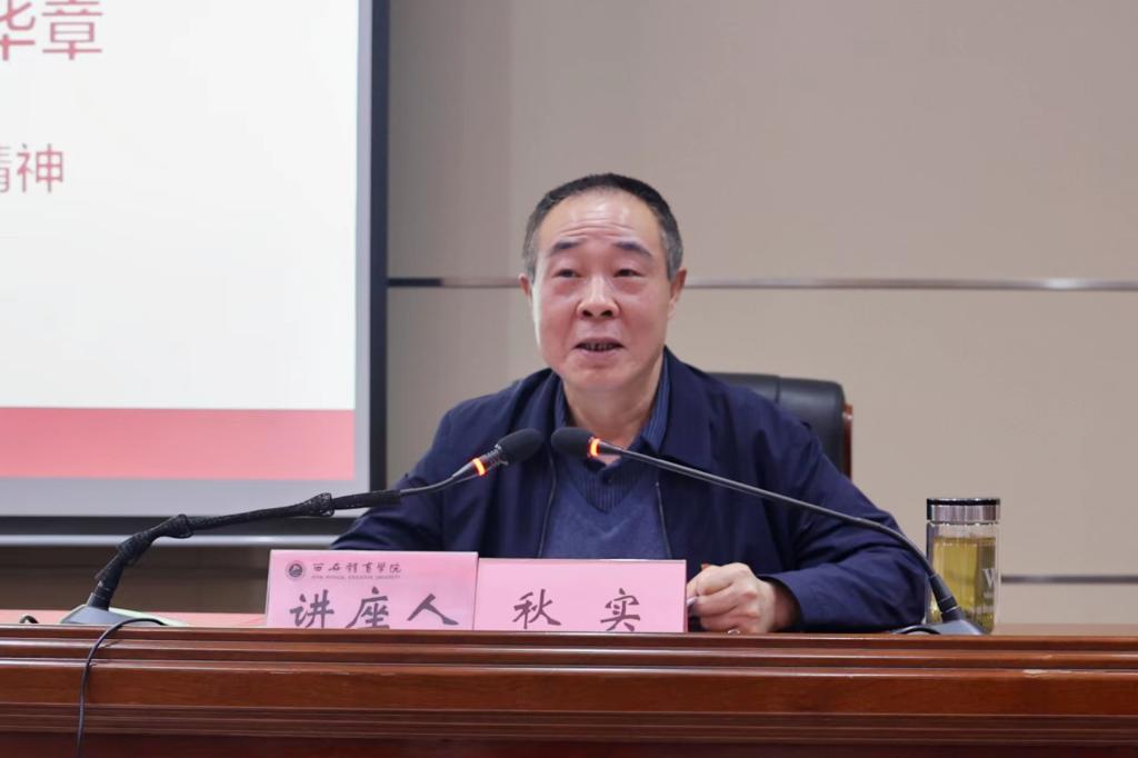 会上,秋实以《谱写新时代中国特色社会主义绚丽华章》为题,从党的二十大的主题及主要成果、过去5年的工作和新时代10年的伟大变革、马克思主义中国化时代化、中国式现代化的内涵、全面建设社会主义现代化国家的目标任务、坚持党的全面领导和全面从严治党、如何应对风险挑战7个方面对党的二十大精神作了系统宣讲和深入阐述。