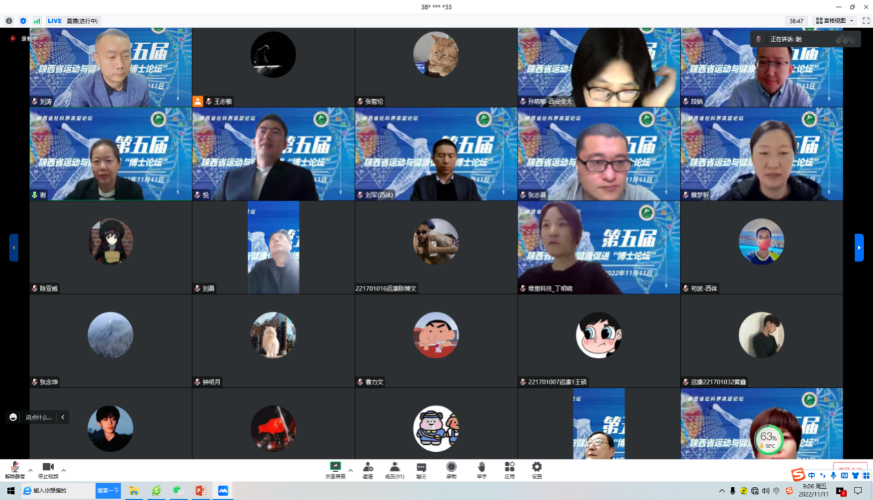 本网讯 近日,陕西省社科界高层论坛暨第五届陕西省运动健康促进论坛在线上顺利召开。本次论坛是由陕西省社科联资助,beat365官网运动与健康科学学院和陕西省体育科学学会体医融合专业委员会联合主办,论坛邀请了华南师范大学体育科学学院院长段锐博士、西安交通大学公共卫生学院及全球健康研究院孙晓敏博士在内的二十名博士、学者为大家带来了精彩的学术汇报。beat365官网副校长谢英、科研处处长高新友、运动与健康科学学院党委书记刘勇等出席开幕式。开幕式由运动与健康科学学院院长刘涛主持。