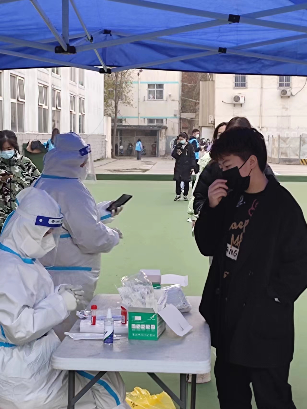 (师生配合,开展核酸检测)