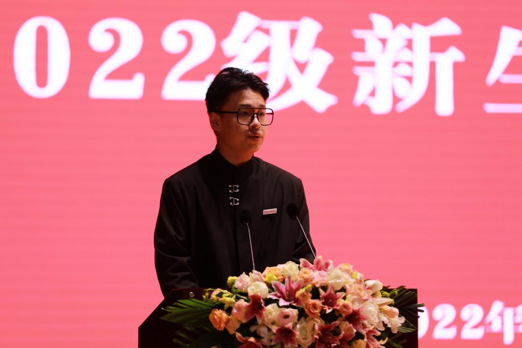 2022级播音与主持专业白嘉文作为新生代表表达了对西体生活的无限憧憬,并表示作为新生要在大学这个重要的人生旅途新起点,做好学业生涯规划,树立远大理想,把握来之不易的学习机会,在学好知识的同时成长为一名成熟且富有责任的西体人。