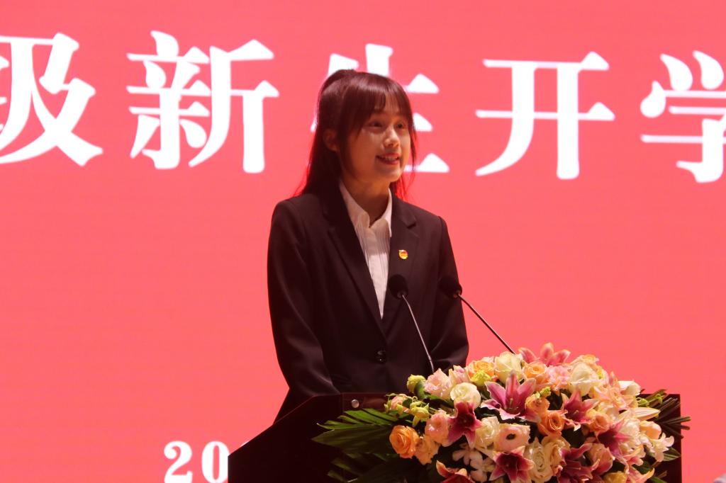 2020级舞蹈学专业学生郑楚盈代表在校生表达了对学弟学妹们的欢迎,她表示在西体这个大家庭里,能够开拓新视野,学习新事物,掌握新技能,希望学弟学妹们尽情发挥兴趣爱好和特长,严格要求自己,争做体育精神的传承者、践行者,为体育强国、健康中国建贡献自己的一份力量!