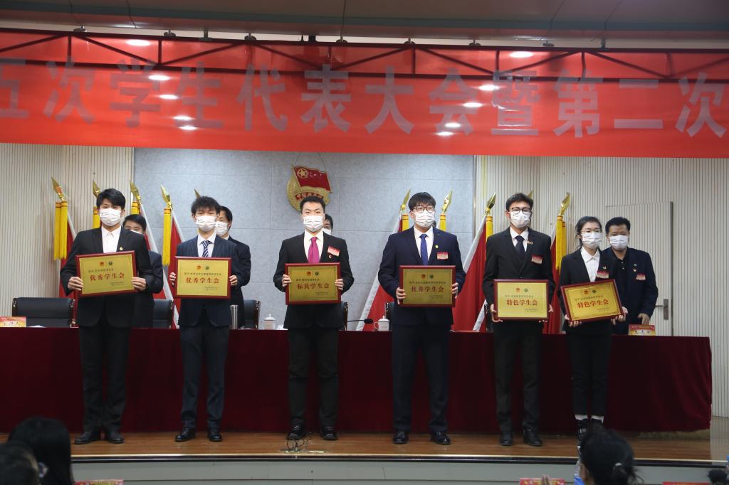 会议为标兵学生分会和优秀学生分会颁发了奖牌,研究生部学生会荣获标兵学生分会奖牌,运动与健康科学学院学生会、艺术学院、体育经济与管理学院学生会荣获优秀学生分会。