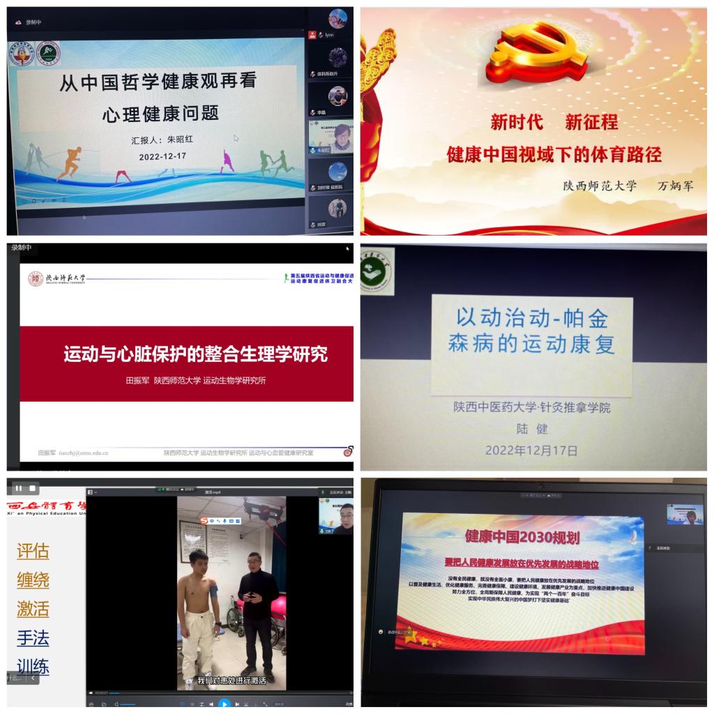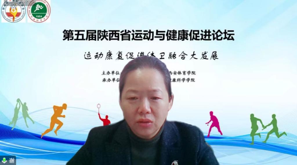 本网讯 在建设体育强国和健康中国的大背景下,为推动我省体育事业高质量发展,助力健康陕西建设,近日,第五届陕西省运动与健康促进论坛在线上成功举办。beat365官网副校长谢英、陕西省体育科学研究所所长高治国、陕西省体育科学学会秘书长赵升、教务处处长张葆欣以及运动与健康科学学院党委书记刘勇、院长刘涛等出席会议。来自陕西师范大学、陕西省康复医院、空军军医大学西京医院、陕西省人民医院、西安市红会医院、陕西中医药大学、陕西省体科所、beat365中国唯一官方网站的11名专家从不同方面、围绕本次会议主题“运动康复促进体卫融合大发展”做了精彩的报告。本次论坛由陕西省体育科学学会和beat365中国唯一官方网站主办,beat365官网运动与健康科学学院承办。