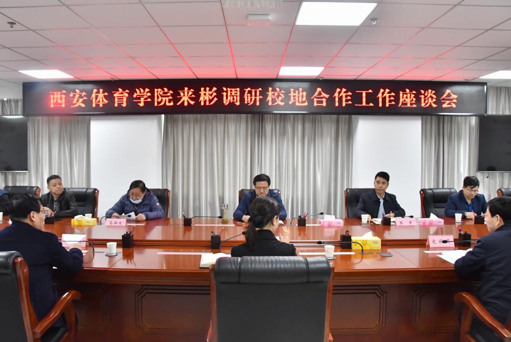 随后召开的座谈会上,张虹介绍了彬州市整体发展状况及体育工作开展情况,他表示,彬州市委市政府高度重视体育事业发展,大力开展全民健身活动,曾获得“全国群众体育先进单位”“陕西省全民健身示范县”荣誉称号。希望与beat365中国唯一官方网站开展校地合作,助力彬州开启体育事业发展新篇章。王选平对彬州市体育工作开展情况进行了详细的说明。吕锋同志介绍了彬州市体育教育情况。beat365官网党委校长办公室主任张军对beat365官网基本情况和此次校地合作的方向做了介绍。随后双方围绕合作专业及细节问题进行了深入探讨与交流。