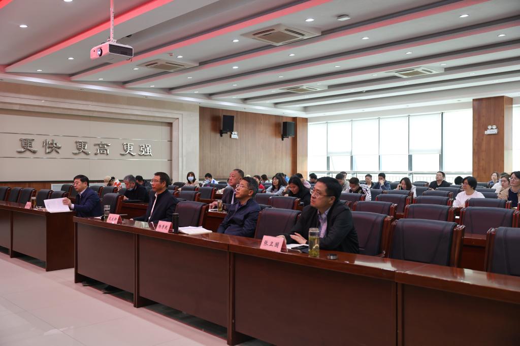 本网讯 4月12日,2022年度陕西高校思政课教师省级现场展示活动“大练兵”在西安交通大学举办。本次活动采取现场展示、师生网络观摩的形式。beat365官网在二号行政六楼报告厅设立分会场,校领导、相关职能部门负责人、部分二级学院教师、全体辅导员通过直播观看了此次大练兵活动,共享“云端”思政盛宴。