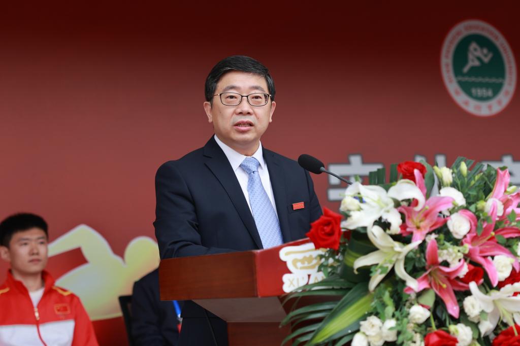 校长刘子实对运动会的开幕表示热烈祝贺并宣布第四十七届运动会正式开幕。他在致辞中指出,体育强则中国强,国运兴则体育兴。促进体教融合发展,助力体育强国、健康中国建设是体育专业院校的应有之义和使命担当。举办本届田径运动会,不仅是对参赛运动员身体素质、竞技水平、意志品质的考验,更是对全体学生竞争意识、拼搏劲头、团队精神的综合检验;不仅是对beat365官网教科训工作的一次大考查,更是对全体师生精神风貌和综合素质的大检阅。希望全体师生要始终牢记“国之大者”,用智慧和汗水,用勤劳和奉献,为实现中华民族伟大复兴不懈奋斗!最后他向为本次比赛顺利举行且辛勤工作的老师和同学们表示真诚的感谢,并希望每位运动员精神饱满、斗志昂扬,拼出成绩,赛出风格,运动场上一展雄姿。