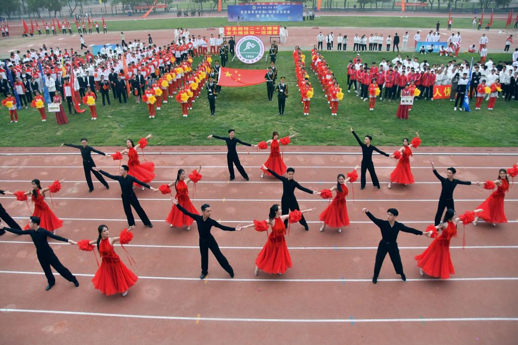 旌旗飘扬,乐声铿锵。国旗护卫队以挺拔的身姿护送着国旗与校旗,整齐划一、昂首阔步地通过主席台。伴随着振奋人心的《运动员进行曲》,红旗方阵、裁判员方阵及各二级学院运动员方阵紧随其后,他们步伐整齐、口号嘹亮、目光坚定地走过主席台,以积极饱满的精神状态接受领导检阅。各方阵独具一格的队形变换为师生带来了一场精彩纷呈的视觉盛宴。