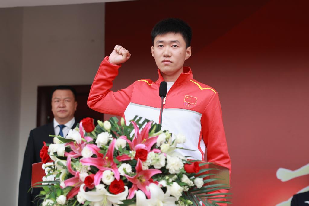 体育教育专业2020级学生屈延博代表运动员进行了宣誓;田径教研室李山教授代表裁判员进行了宣誓。