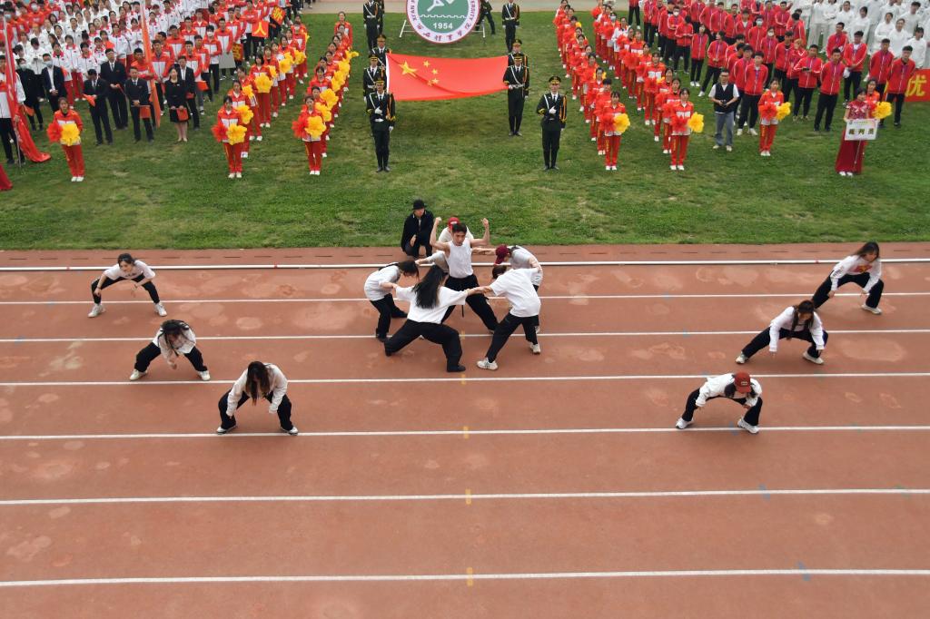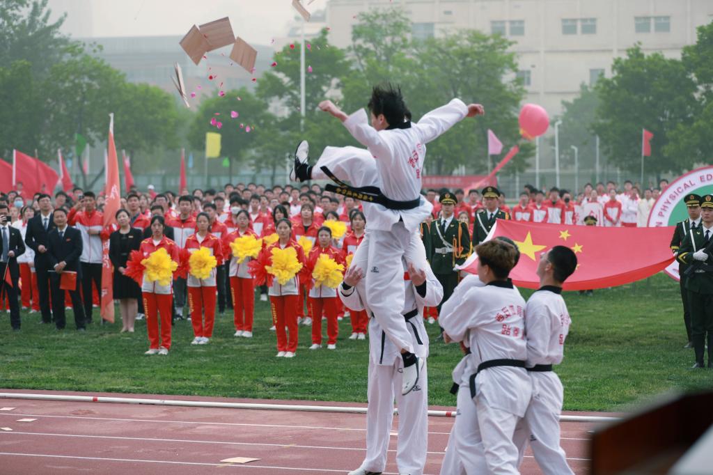 随后123名学子轮流登场,为开幕式献上精彩表演。热烈欢快、活力四射的啦啦操,洋溢青春、动感十足的街舞,精神抖擞、气势磅礴的武术表演,行云流水、一鼓作气的跆拳道,舒展自如、身轻如燕的体操、花式跳绳表演,优雅从容、轻盈婀娜的体育舞蹈,展现了西体各专业特色,彰显出西体人活力四射、朝气蓬勃的精神面貌,赢得现场师生的阵阵惊呼和赞叹。