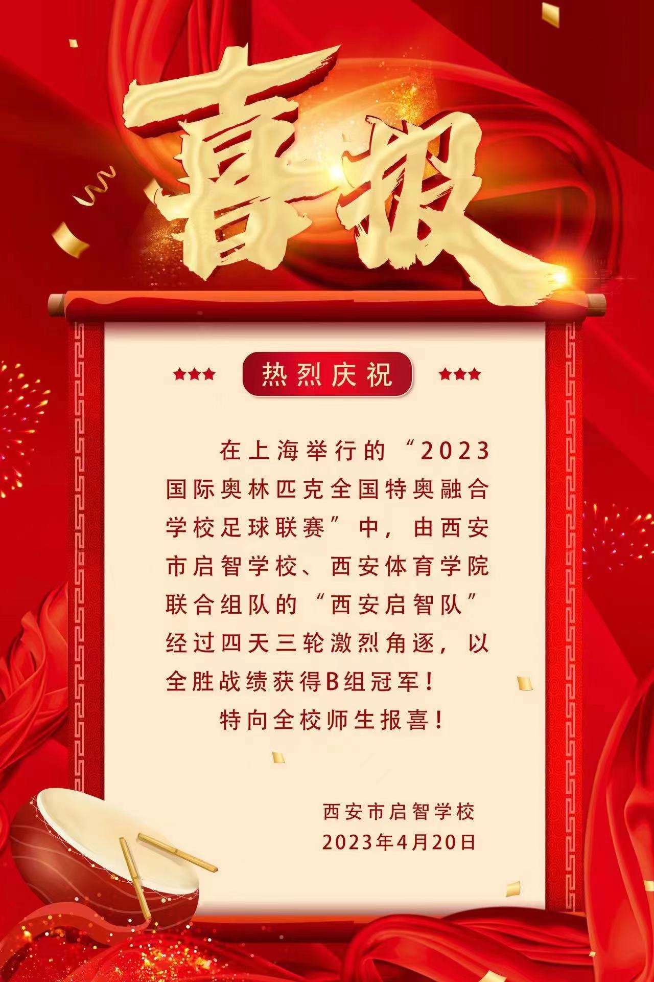 本网讯 近日,为期四天的“2023国际奥林匹克全国特奥融合学校足球联赛”在上海落下帷幕,beat365官网与西安市启智学校组建的融合足球队勇夺B组冠军。