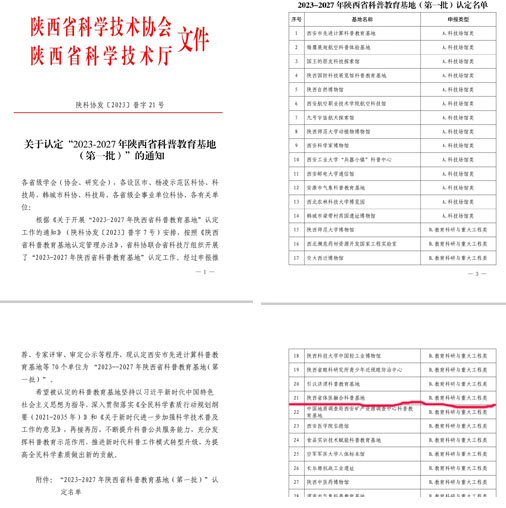 本网讯 近日,陕西省科学技术协会、陕西省科学技术厅公布了“2023-2027年陕西省科普教育基地(第一批)”名单,陕西省体医融合科普教育基地入选。