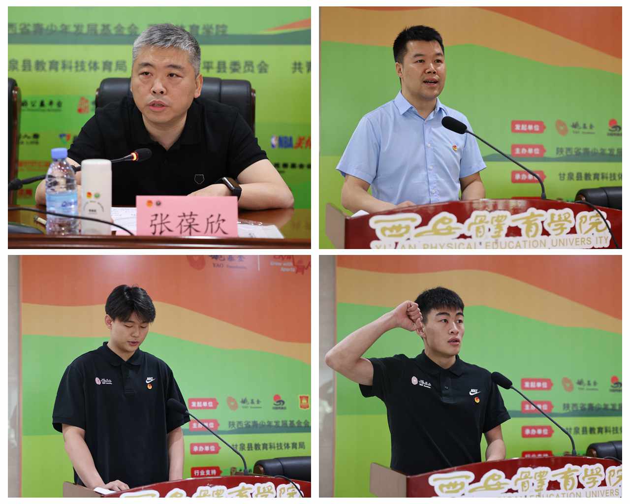 乌钢、张军、王志刚分别为渭南、延安、重庆志愿者支教团授旗,这既是对公益事业的深情嘱托,更是“以体育人”的责任传递。随后,张葆欣、杜旭为支教志愿者赠送书籍和纪念品。