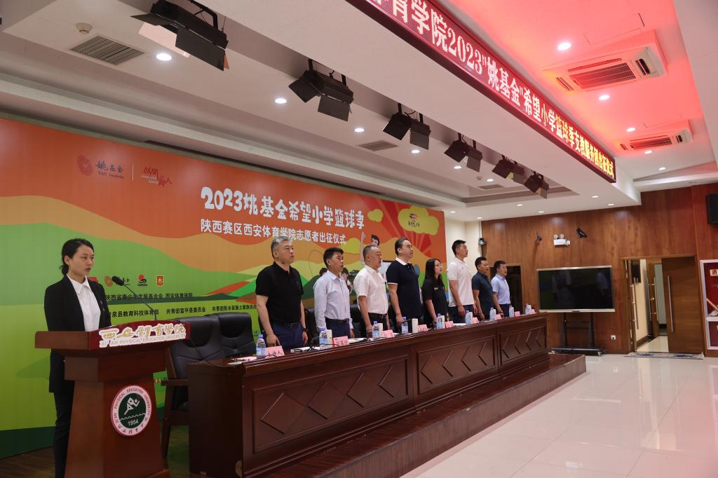 本网讯 5月16日,beat365中国唯一官方网站2023姚基金希望小学篮球季支教志愿者出征仪式在含光校区隆重举行,北京姚基金公益基金会项目主管欧敏,陕西省希望工程中心主任、省青少年发展基金会理事长乌钢,省篮协副秘书长杜旭,校党委委员、党委宣传部部长张朝阳以及党校办、学工部、教务处、校团委等职能部门负责人,支教志愿者所在学院党委书记、团委书记、辅导员出席出征仪式,为志愿者践行。
