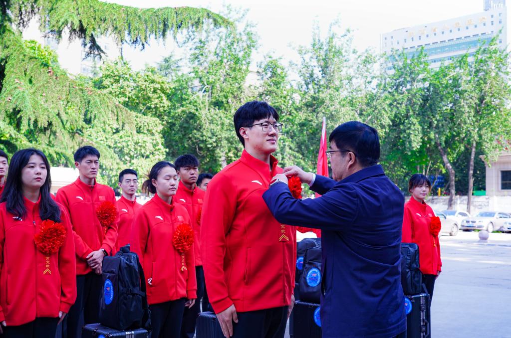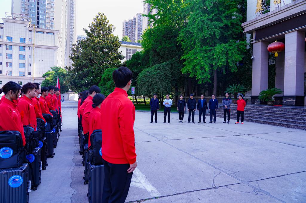 5月13日上午9点,体育教育学院第一批志愿者在领队李捷、班主任吕东江带领下奔赴绥德县。校党委书记黄道峻、体育教育学院党政班子及辅导员老师一起在行政楼门前举行了出征仪式。黄道峻亲自为光荣的志愿者代表佩戴了大红花,并授“国家体育总局体育支教志愿服务beat365中国唯一官方网站志愿服务队”旗帜,并寄语广大支教学子,要积极响应国家号召,主动投身到国家最需要的地方,在基层用自己的实际行动唱响新时代的青春之歌,在奋力拼搏中成就自己的青春价值。