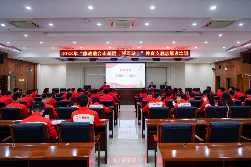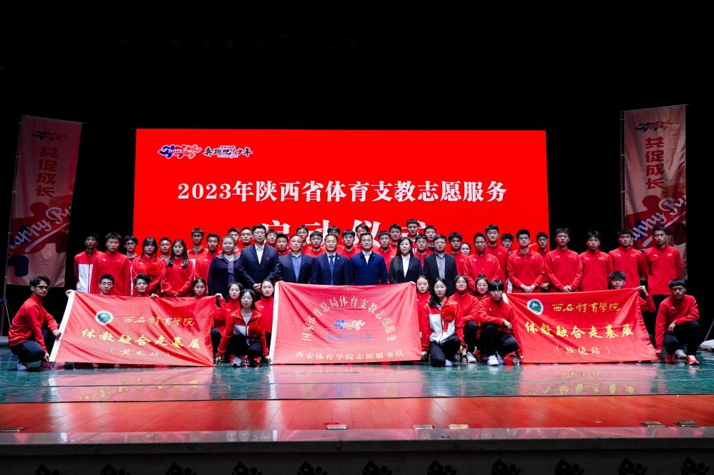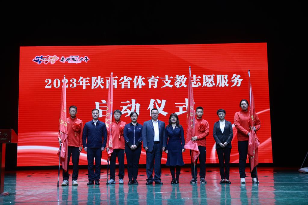 在beat365官网艺术馆大礼堂举行的2023年陕西省体育支教志愿服务启动仪式上,陕西省体育局副局长李富生在作动员讲话时提出目标要求:2023年陕西省体育支教志愿者服务工作走在全国前列,让更多的孩子动起来、跑起来,跑出阳光灿烂的精气神、跑出国家和民族的美好未来。