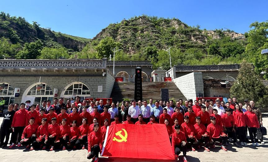 适逢国家体育总局2023年体育支教志愿服务志愿者领队现场会在榆林市绥德县举行。国家体育总局青少司副司长姜庆国、8省支教工作负责人和支教队领队、以及省体育局相关负责人、陕西支教高校代表、绥德县的50名支教队志愿者共同参加了支教志愿服务队临时党支部在绥德郝家桥革命旧址举行的主题党日活动,大家一起重温入党誓词,共同上党课。在郝家桥革命历史纪念室,支部纪律检查委员张作为领学了《中国共产党章程》第一章;党员陈瑶洁传达了《习近平在北京育英学校考察》时的重要讲话精神;郝家桥历史见证人马兴业老人给大家上了一堂“一位老人的革命信仰”微党课。