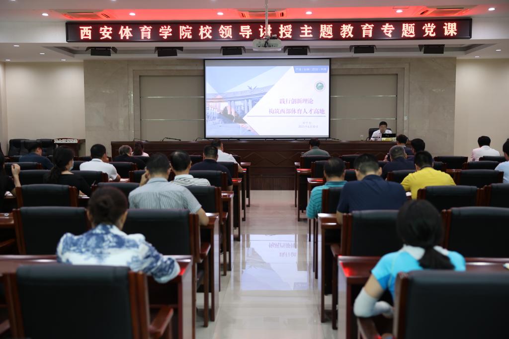 本网讯 为进一步深化学习贯彻习近平新时代中国特色社会主义思想主题教育成果,按照学校主题教育统一安排,6月30日上午,校党委副书记、校长刘子实以《践行创新理论 构筑西部体育人才高地》为题为全校副处级以上领导干部和二级学院师生代表讲授了专题党课。
