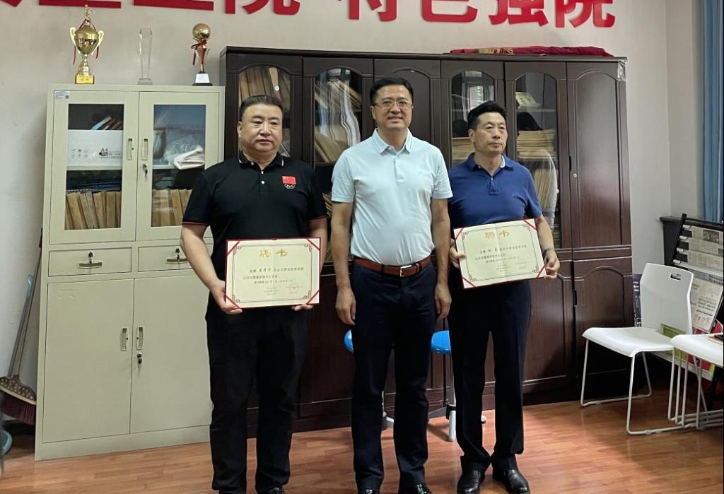 (张卫国为体检中心主任刘勇和吕学宏颁发聘书)