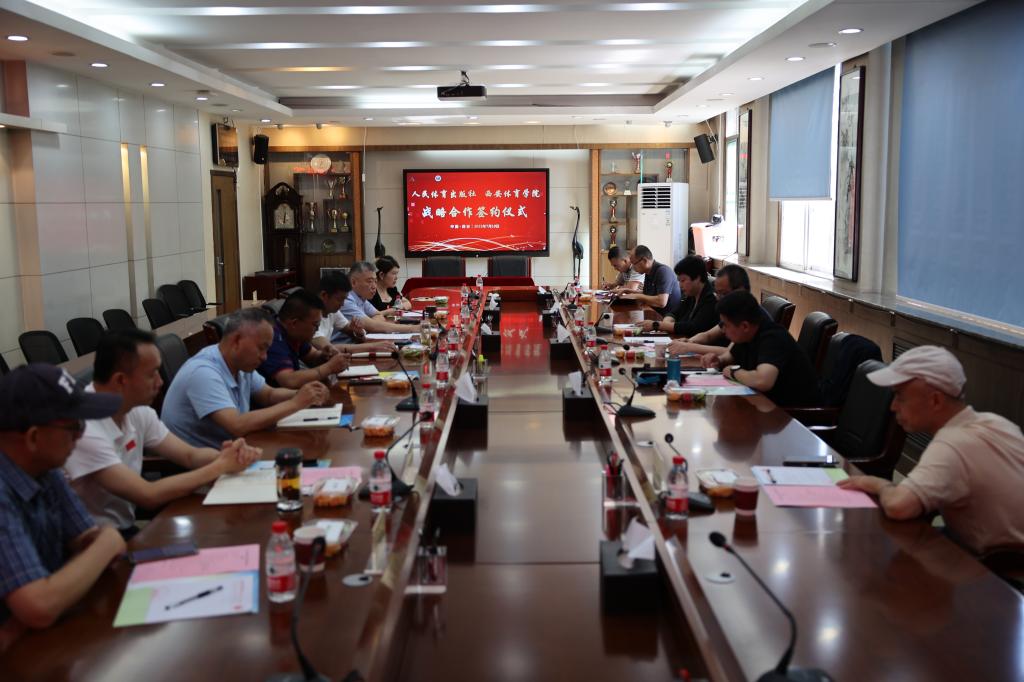 李百放向与会人员介绍了人民体育出版社的历史情况和发展方向,他表示人民体育出版社在教材出版、教材建设等方面具有丰富的经验和历史沉淀,出版社致力于为专业体院校提供更加优质服务。他认为双方可以围绕教材研讨、教材建设、学术专用书版以及体育专业图书推广等多个方面开展多种形式的合作,希望双方能互相协助,互相支持,互利共赢,取得更好教材建设成果创新。随后,李凡和张葆欣就beat365中国唯一官方网站与人民体育出版社战略合作协议进行签约。