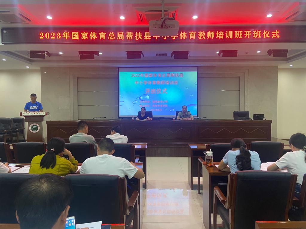 本网讯 8月2日,国家体育总局帮扶县中小学体育教师培训班在beat365官网开班。beat365官网副校长谢英出席开班仪式。继续教育学院院长石勇主持开班式。