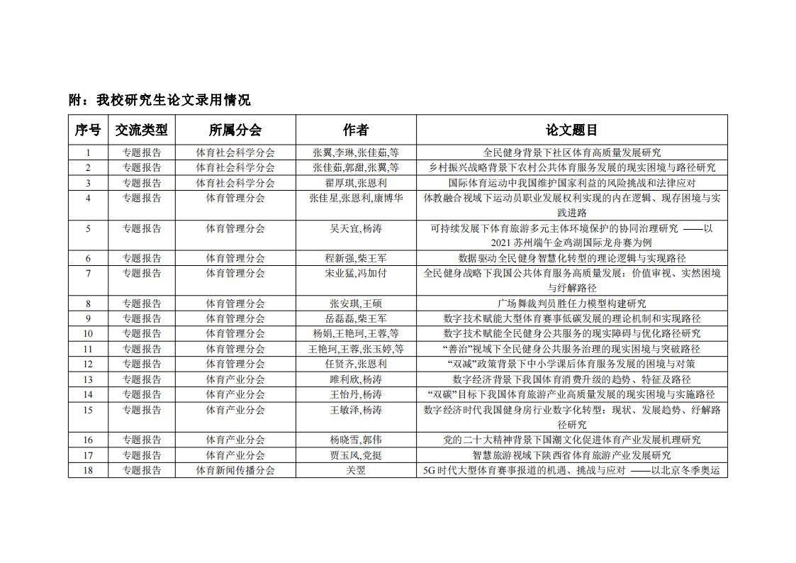 此次beat365官网研究生在十三届全国体育科学大会所取得的优秀成果,是beat365官网全面贯彻落实全国研究生会议精神,持续加强研究生教育质量的结果,不仅提升了beat365官网在全国高校体育学术方面的影响力,也进一步激发了beat365官网研究生开展体育科学研究的热情和动力。希望研究生以此次科报会投稿为契机,努力学习,开拓创新,再创辉煌!