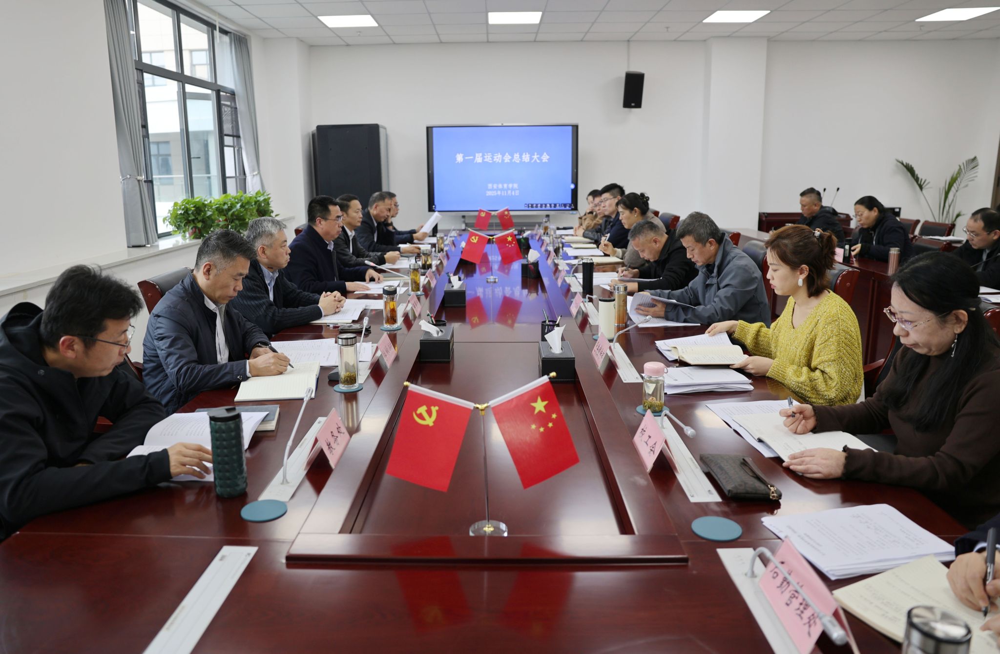 校领导结合分管工作进行点评,充分肯定了首届运动会取得的显著成效,并就进一步提升组织协调能力、优化项目设置、增强二级学院参与度、强化过程管理、科学调度场地等方面提出改进建议。