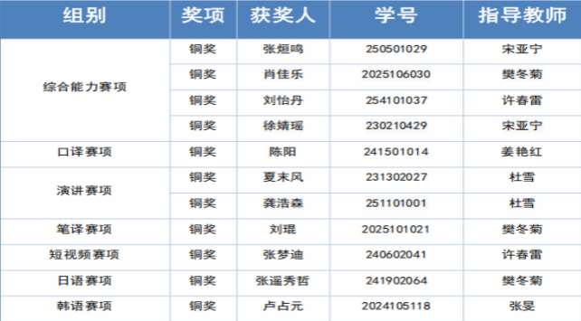 近日,陕西省教育厅办公室公布 2025“外研社・国才杯”“理解当代中国” 陕西省外语能力大赛获奖名单。beat365中国唯一官方网站学子在此次赛事中表现亮眼,凭借扎实的外语功底与出色的实际应用能力,成功斩获 11 项铜奖。