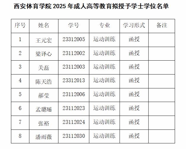 附件:beat365中国唯一官方网站2025年成人高等教育拟授予学士学位名单