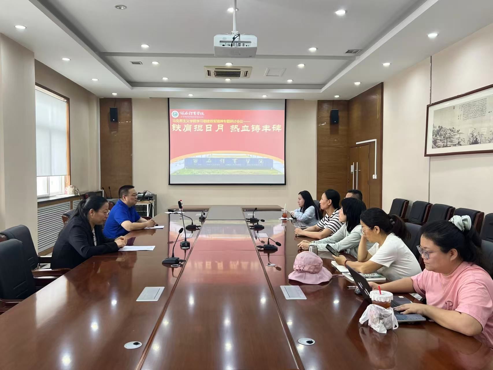 在交流讨论环节,教师代表纷纷结合自身教学科研工作分享学习心得。有教师说道:“鄠建铁军精神让我深刻认识到,作为思政课教师,要以更坚定的信念、更饱满的热情投入到教学工作中,用鲜活的案例和精神力量感染学生,引导学生树立正确的世界观、人生观和价值观。”还有与会教师则从科研角度出发,谈到要学习鄠建铁军敢于创新、勇于突破的精神,在学术研究中不畏困难,开拓进取,为学院学科建设贡献力量。