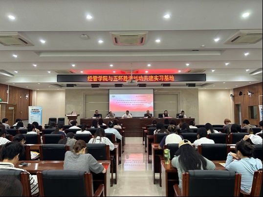 为推动体育经济与管理专业人才培养与行业需求精准对接,进一步提升学生实践能力与就业竞争力,体育经济与管理学院与五环胜道运动产业开发有限公司教学实践基地签约授牌仪式于5月14日15时在beat365中国唯一官方网站含光校区2号行政楼六楼报告厅隆重举行。本次会议由体育经济与管理学院党总支书记陈鑫主持,出席本次会议的有体育经济与管理学院院长王鹏,副院长张恩利,经管学院辅导员霍达、胡雪妍、鲁琼阳;五环胜道产业开发有限公司人力部总经理肖宇峰,主任刘丽,主管靳攀攀,省体店人事经理解莎莎,以及体育经济与管理学院全体学生代表。