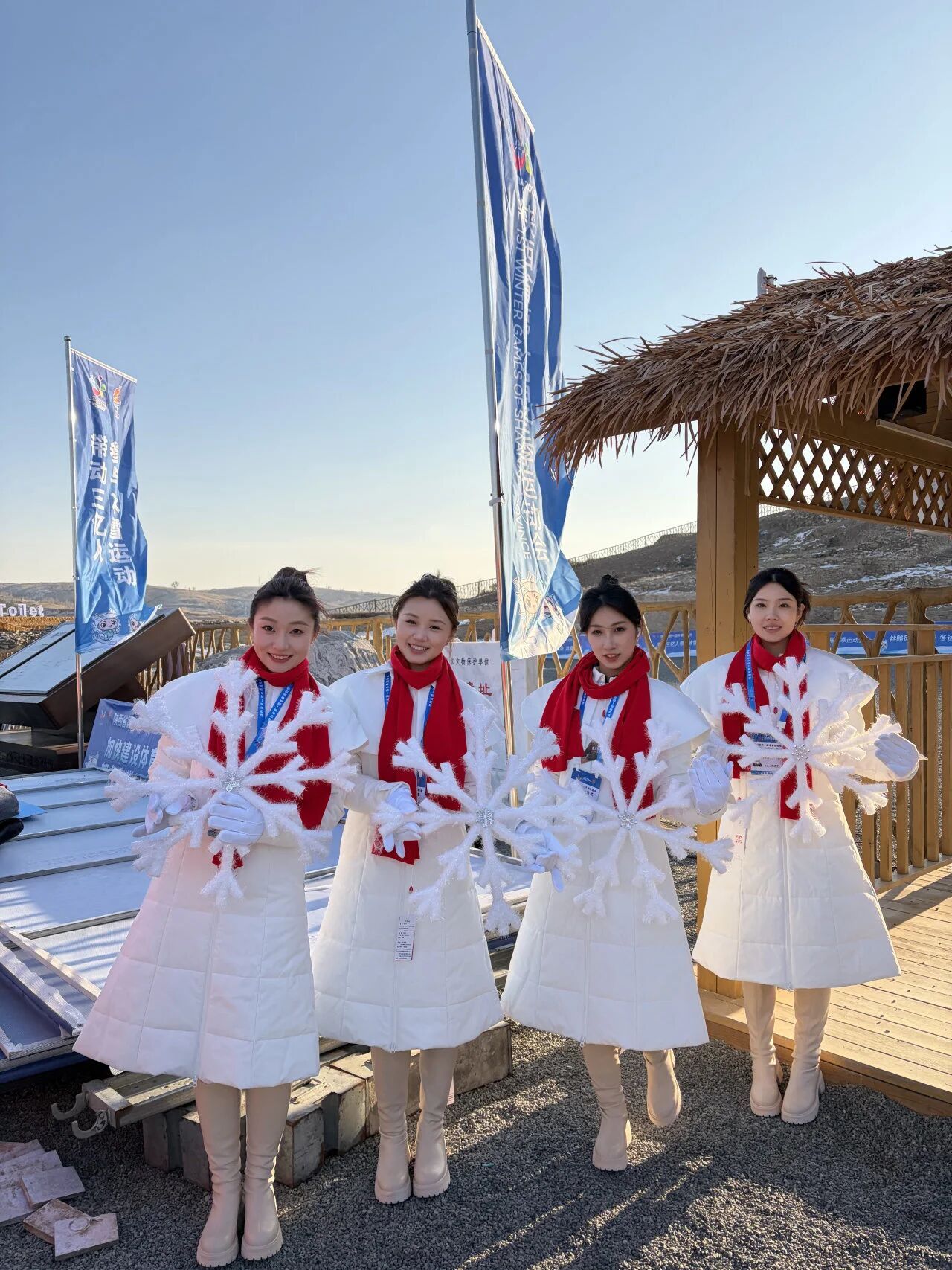 2025年12月29日至31日,在体育艺术与传媒学院副院长姚静、体育舞蹈教研室主任张璐的带领下,由来自舞蹈表演专业本科生和体育人文社会学研究生组成的16名西体学子,在石峁遗址进行了为期三天的全流程演练。环境苦,意志坚,冬季的陕北,寒风凛冽,排练现场一度逼近零下二十度,少女们身着演出服,在露天环境中一练就是数小时。在古老的皇城台上,她们用最原始、最庄重的方式,成为陕西省首届冬运会火种采集仪式中最靓丽的一抹风景。