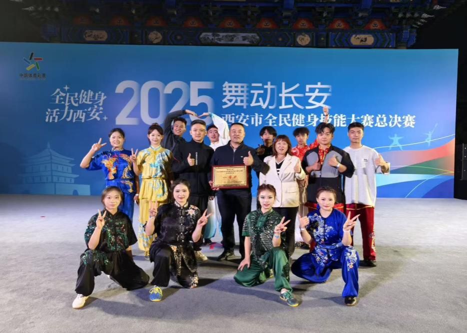 服务社会是武术学院长期坚持的育人理念。2025年9月24日,武术学院受邀参加“舞动长安”2025年西安市全民健身技能大赛荣获“一等奖”。此次比赛由套路教研室申一男老师组队训练,共选派12名队员参加。