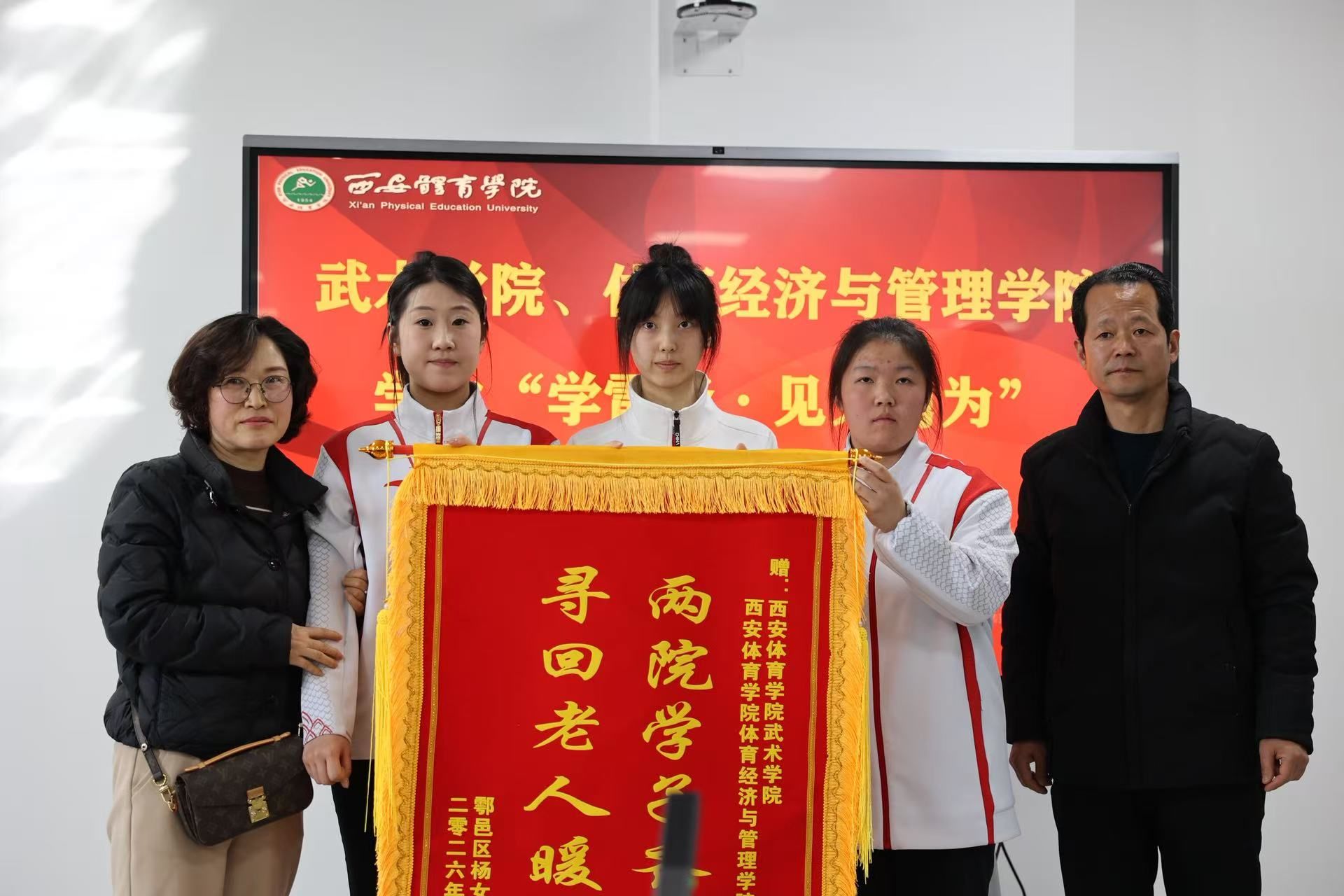 三月春风暖人心,雷锋精神润无声。近日,我院学子高雨彤、黄方心同学与体育经济与管理学院薛晗同学在鄠邑区沣京路连续救助两名遇困老人的感人事迹,受到了老人家属的诚挚感谢与校内外广泛赞誉。她们以实际行动,深刻诠释了我院“尚武崇德、知行合一”的教育精神,为新时代雷锋精神写下了鲜活的武术青年注脚。