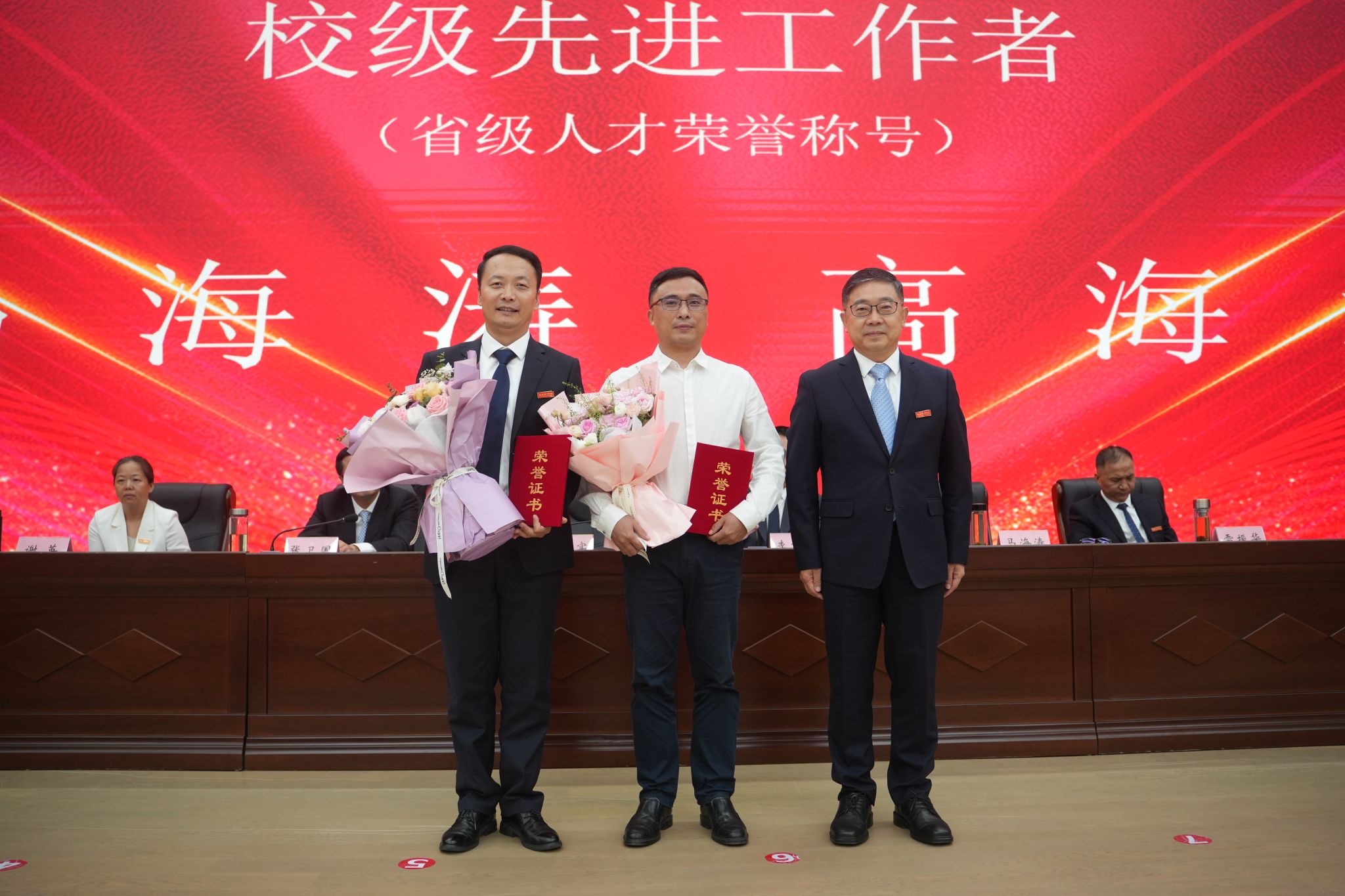 党委书记刘子实为获得“校级先进工作者-省级人才称号”荣誉的教师和“师德先进集体”荣誉的单位颁奖