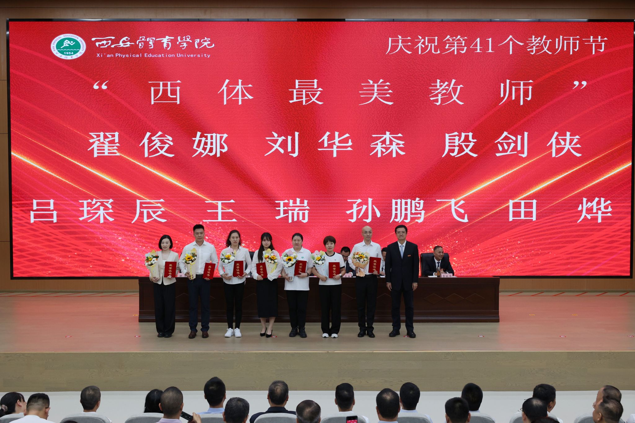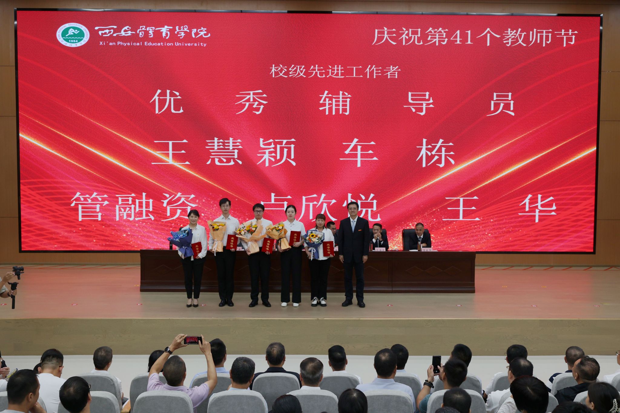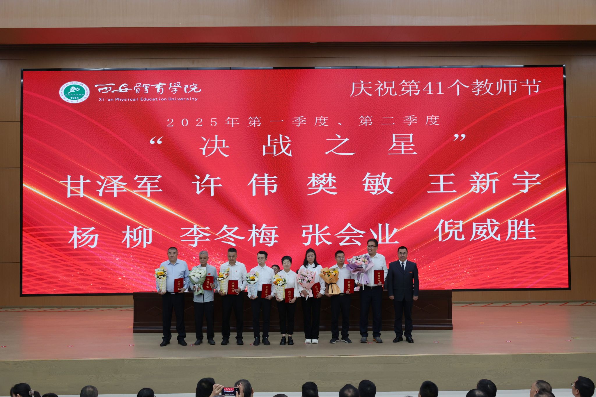 本网讯 金秋九月,丹桂飘香。在第41个教师节来临之际,9月10日,beat365官网在鄠邑校区举行庆祝第41个教师节暨2025年教师表彰大会。校领导、受表彰教职工、教师代表及副处级以上干部齐聚一堂,共话初心使命,共襄育人荣光。