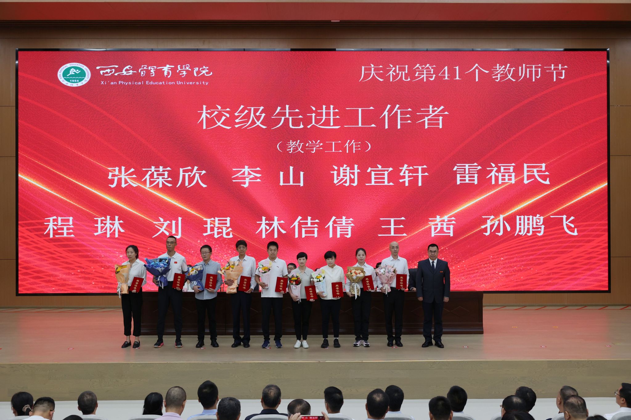 校长李富生指出,教师是学校发展的第一资源,此次表彰既是对广大教师辛勤付出的充分肯定,也是弘扬尊师重教优良传统的具体体现。近两年,学校制定实施“三年行动计划”,创新开展“三大战役”,办学理念日益清晰,硬件条件显著改善,综合改革全面推进,教学科研、竞赛训练、人才培养质量、文化影响力等方面持续突破,已加速迈入全国体育院校第一方阵。广大教师要坚定理想信念,涵养教育情怀,强化责任担当,争做“有情怀、有境界、有水平”的新时代大先生;要持续提升教书育人、科研创新与服务社会的能力,把个人奋斗融入学校发展与国家战略之中,以奋斗姿态接续发力、砥砺前行,为实现西体美好明天贡献智慧和力量。