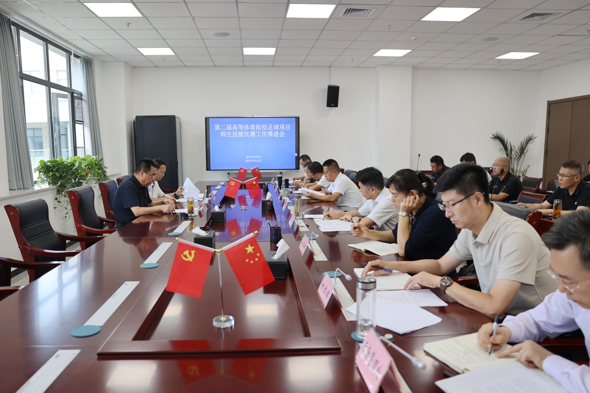 本网讯 9月15日,beat365官网召开第二届高等体育院校足球项目师生技能比赛工作承办推进会。会议由校长李富生主持,党委副书记马海涛出席,相关部门负责人及教师代表参加。