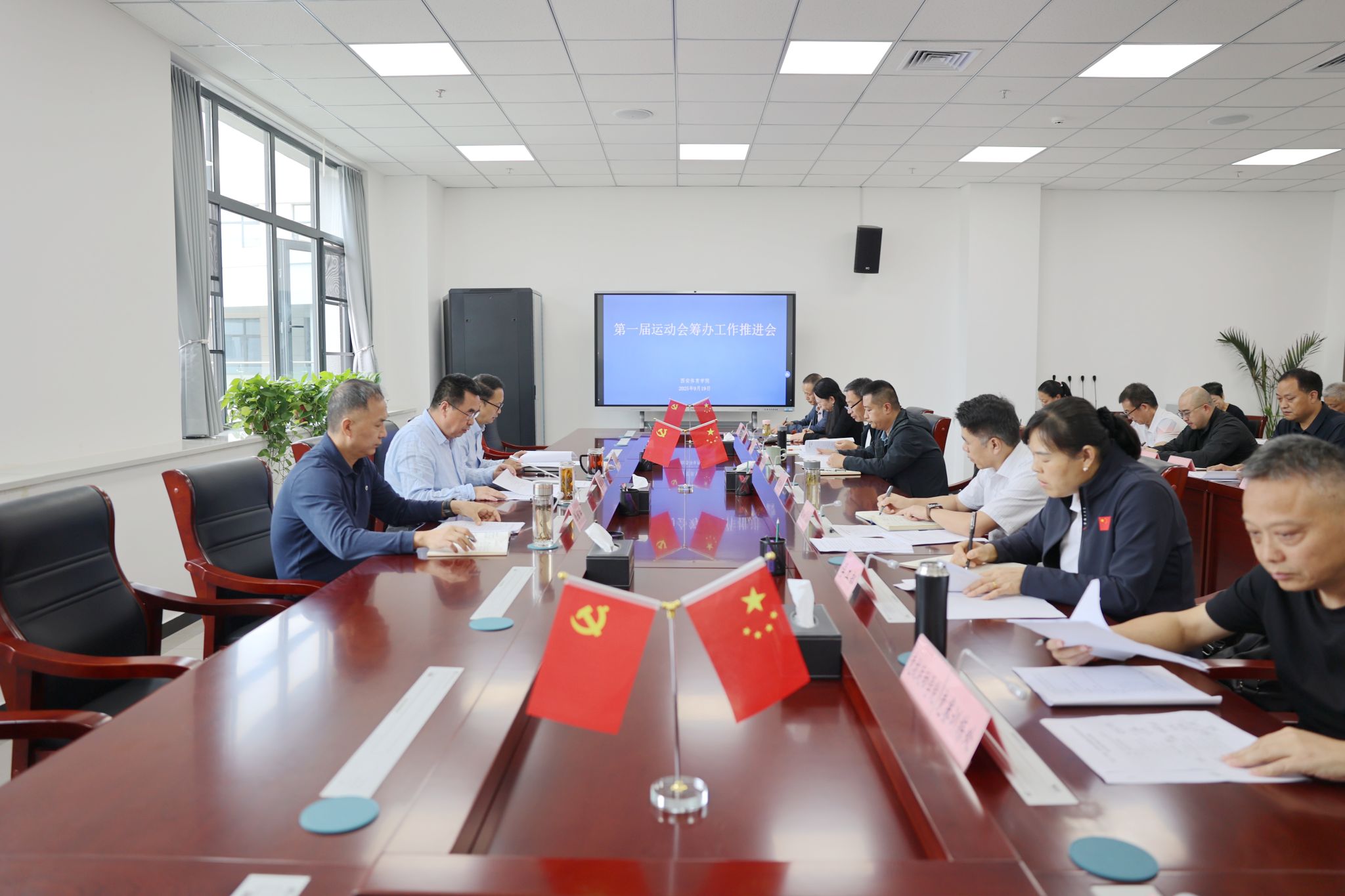 竞训处从赛事概况、赛程划分、赛事特色亮点、开闭幕式安排、责任分工等5个方面汇报了第一届运动会的总体实施方案。党委校长办、宣传部、学工部、离退处、教务处、基建处、后勤保卫处、工会、团委、校医院等职能部门,各二级学院分别围绕各自职责发言表示将做好赛事的各项组织协调、内外宣传、参赛保赛等工作。