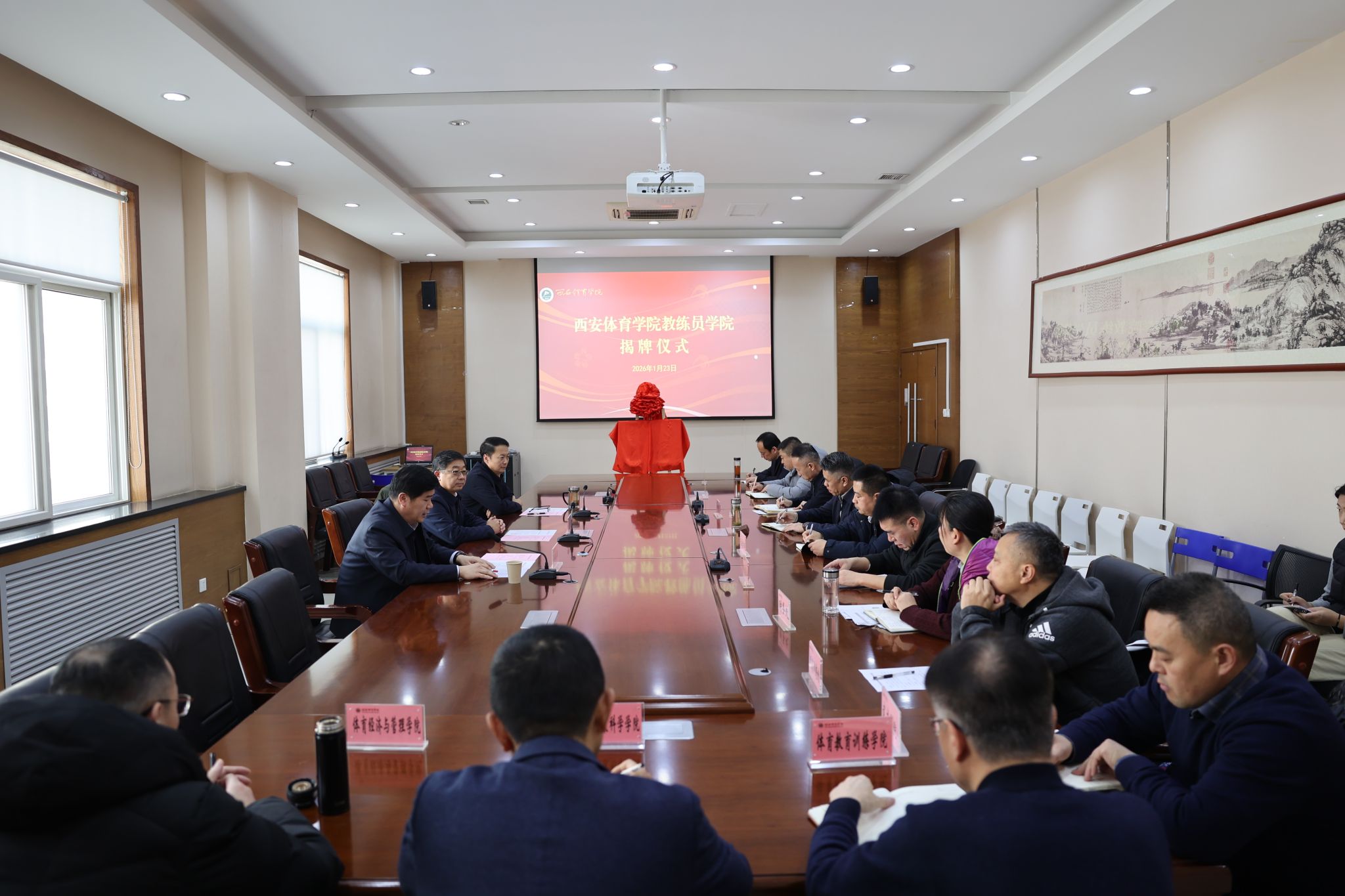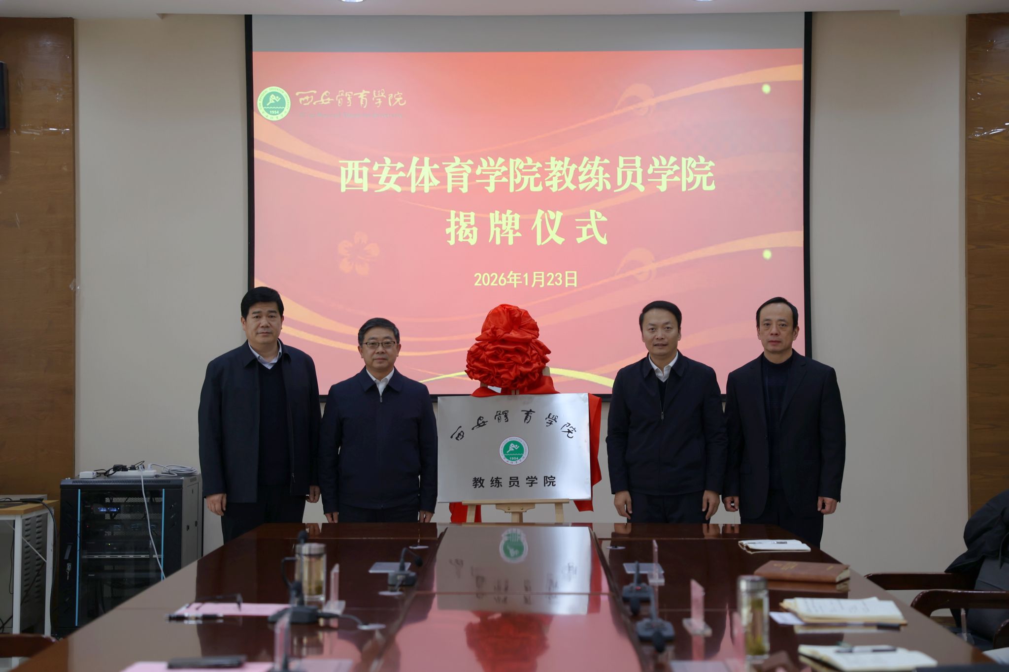 本网讯 为深入贯彻体育强国、人才强国战略及《体育强国建设纲要》要求,优化办学布局,强化特色发展,助力陕西体育强省建设,1月23日,beat365官网在含光校区举行教练员学院揭牌仪式。校党委书记刘子实、党委副书记马海涛、副校长毕德鹏出席,相关职能部门负责人、二级学院院长、继续教育学院全体人员参加仪式,共同见证这一关乎学校特色发展与区域体育人才培养的重要时刻。