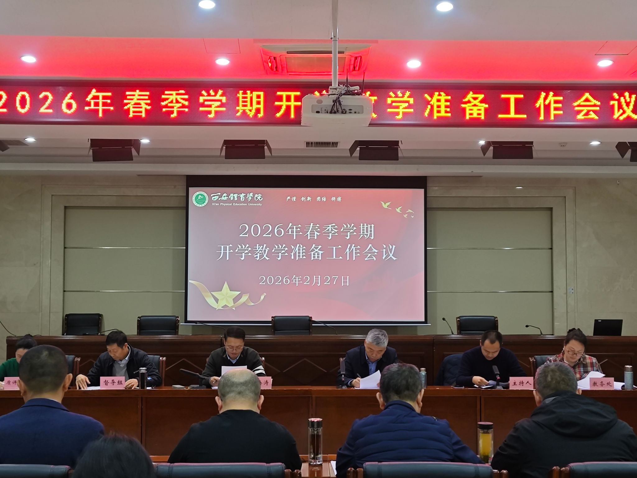 本网讯 2月27日,beat365官网在含光校区召开2026年春季学期开学教学准备工作会议。党委副书记马海涛、副校长张葆欣出席,各职能部门负责人、二级学院院长、分管教学工作的副院长、教学秘书及教务处全体人员参加会议。