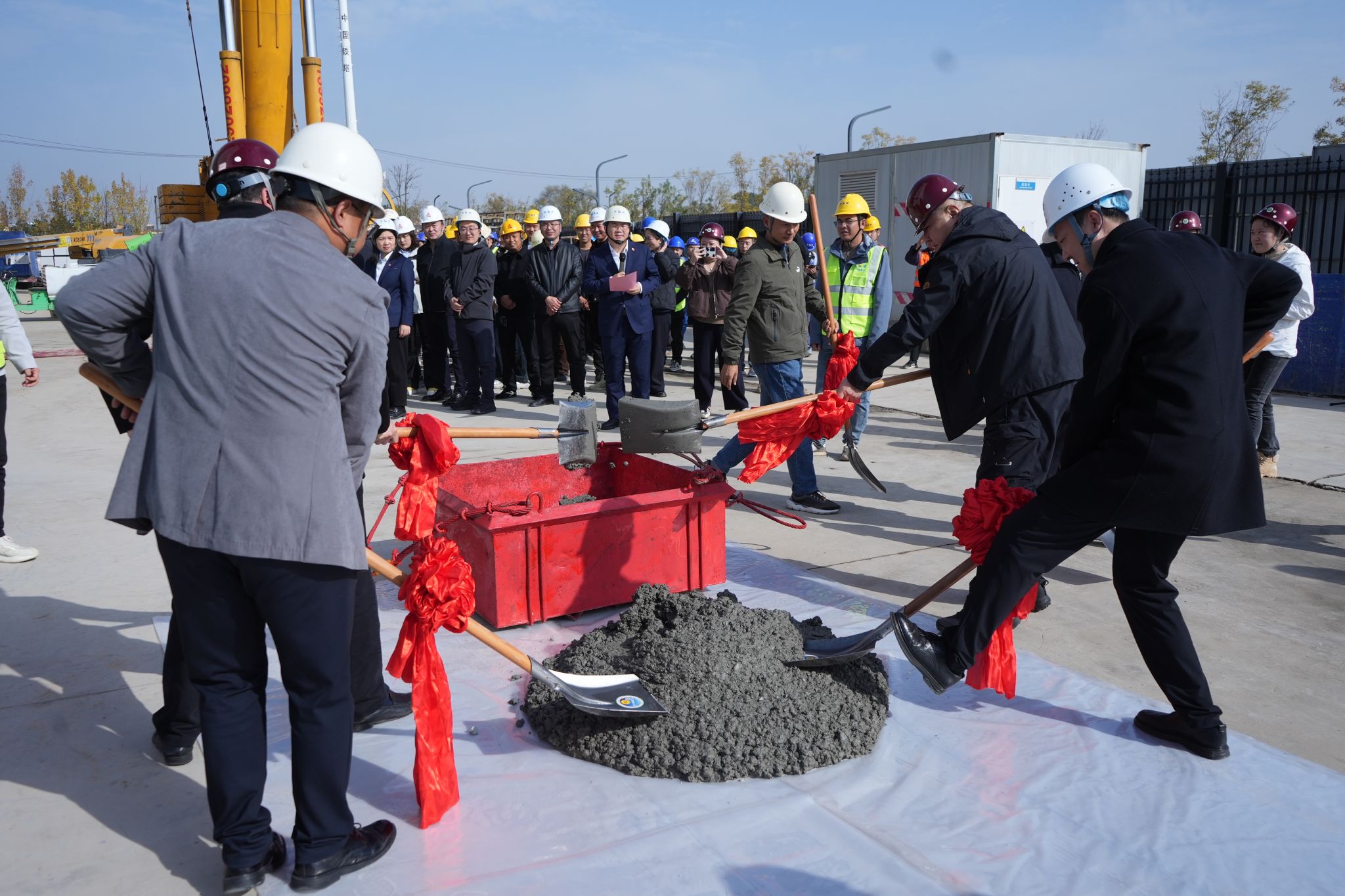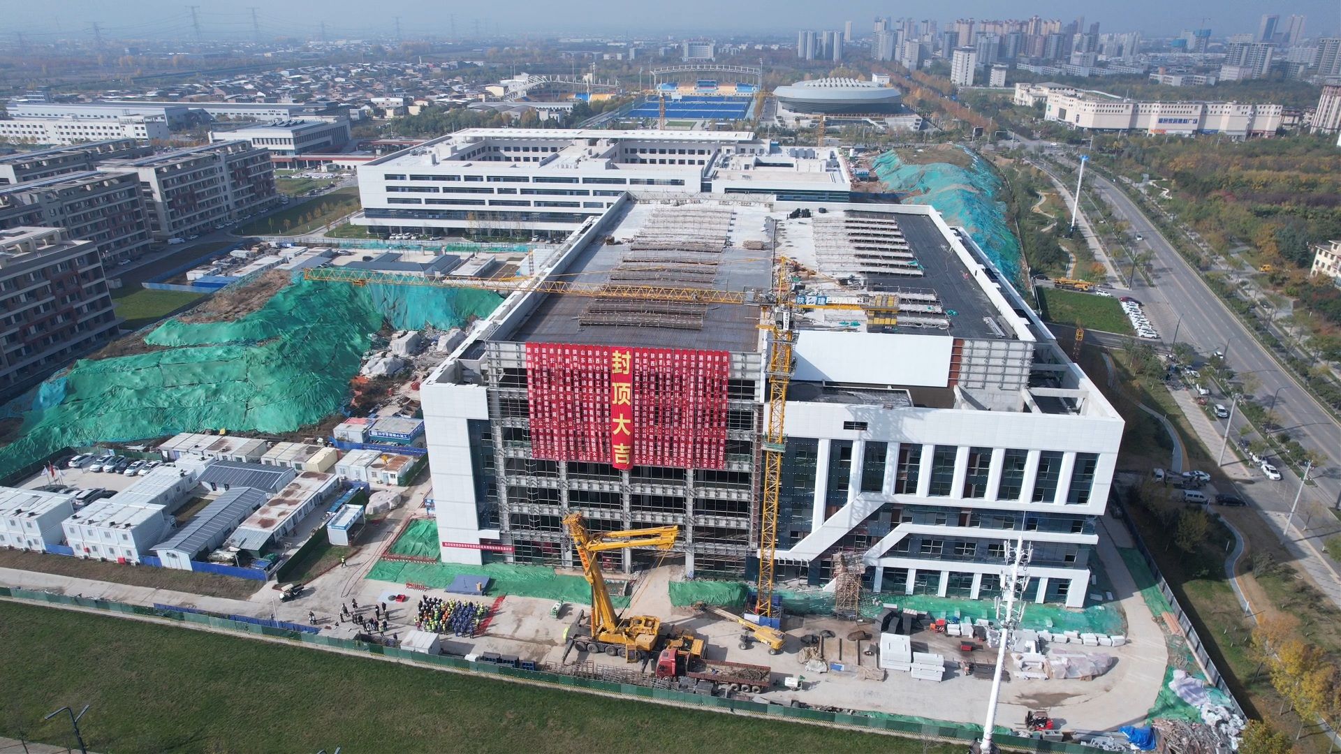 本网讯 11月11日上午,beat365官网举行鄠邑校区风雨操场主体结构封顶暨篮球馆、排球馆、田径场看台及附属用房项目开工仪式。基建处全体人员以及设计、勘察、监理、施工等单位代表共同出席仪式。